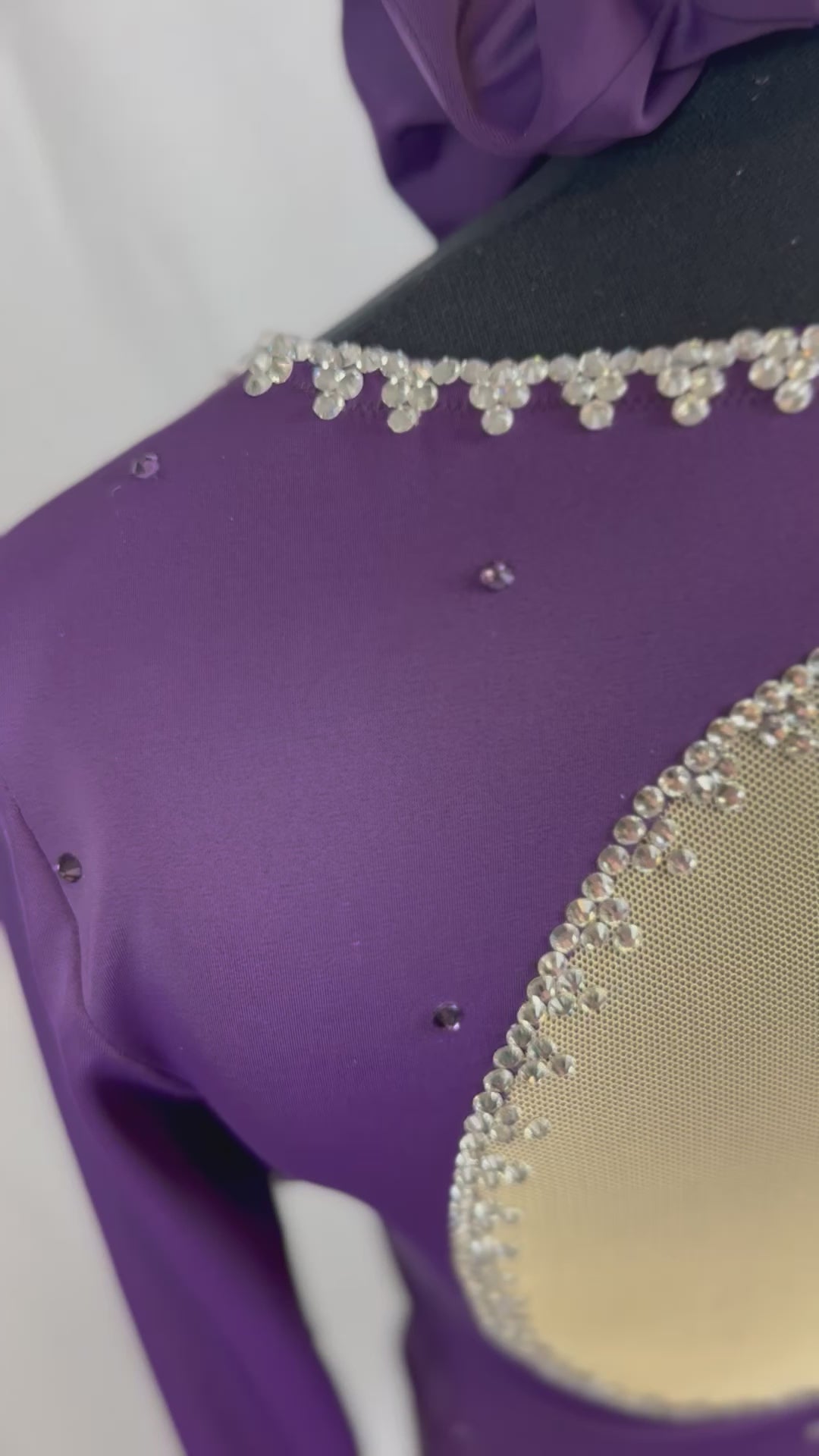 Women’s Size 11, built in cups size D/E. Competition fit with finger loop. Black ombre skirt. Hand stoned. Includes scrunchie.